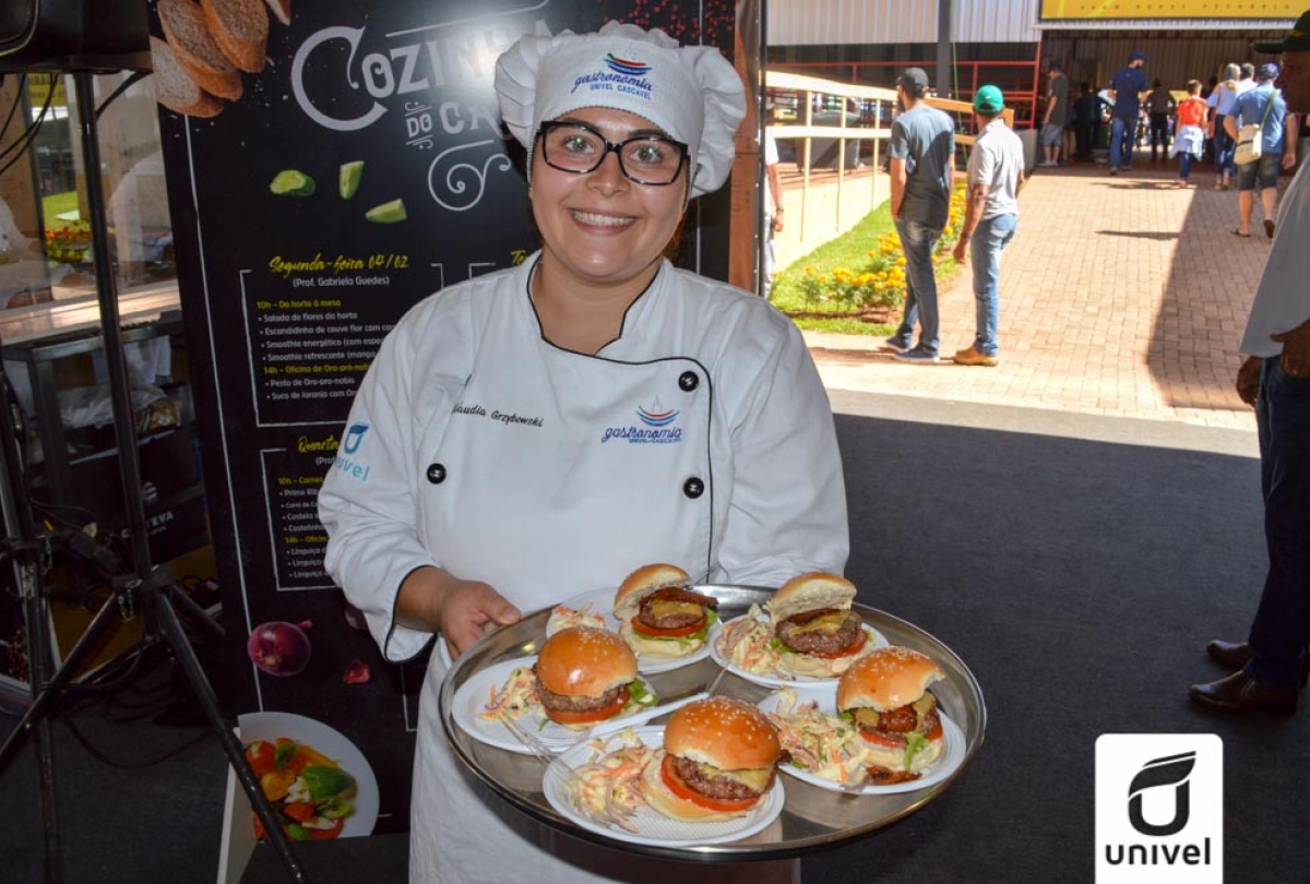 Localizada no Salão Tecnológico, a Cozinha do Campo proporcionou para quem passava aulas com os acadêmicos e professores do curso de Gastronomia da Univel. Foram abordadas diversas receitas, como PANCs (Plantas Alimentícias Não Convencionais), cozinha paranaense, oficina de cucas, cortes e carnes, hambúrgueres e risotos. “O curso foi ótimo! Consegui aprender as receitas, o professor explicou muito bem e a comida estava gostosa”, contou Loreni Soares, que esteve visitando o Show Rural.